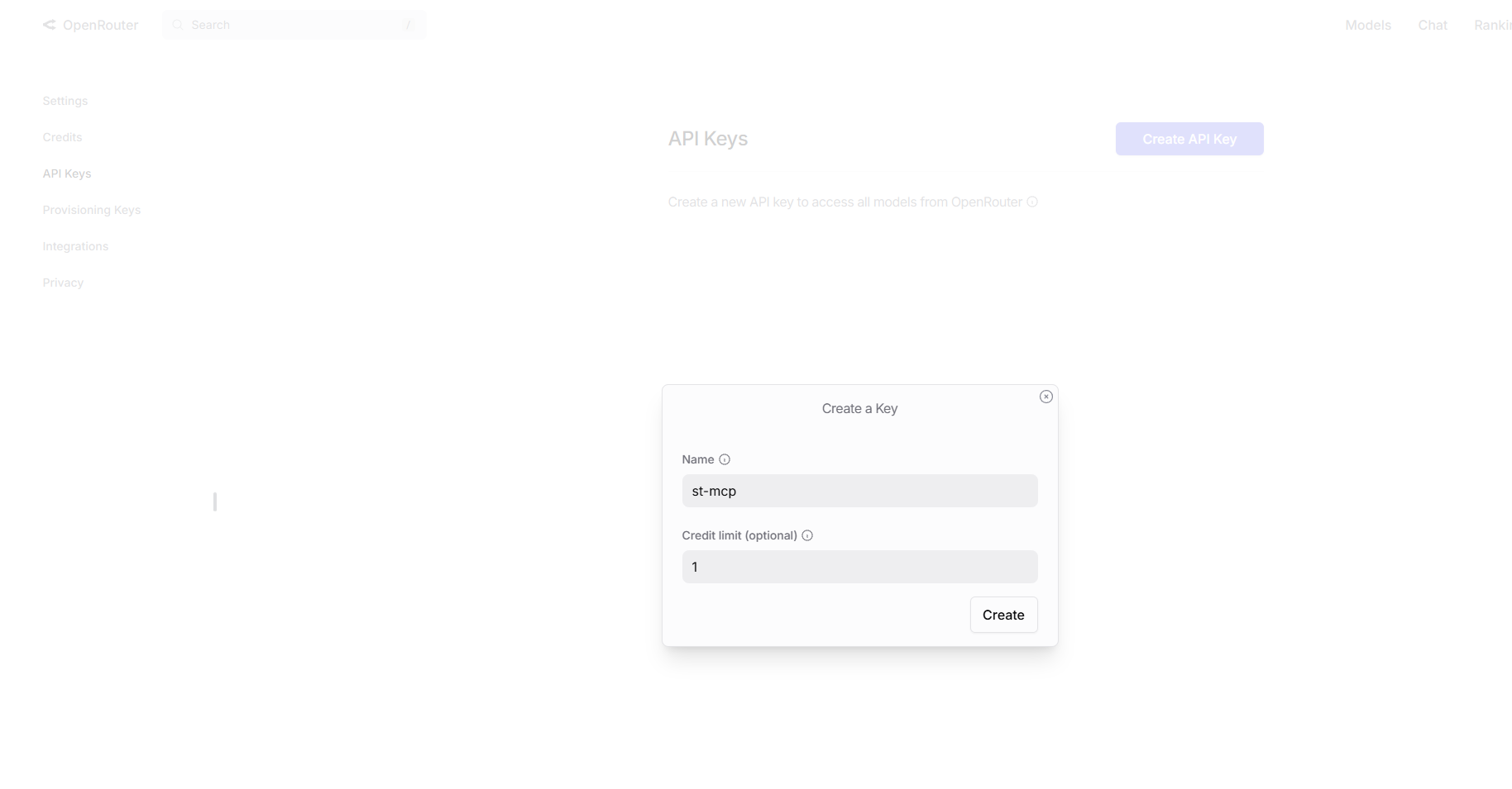 OpenRouter API 키 발급 화면 예시
