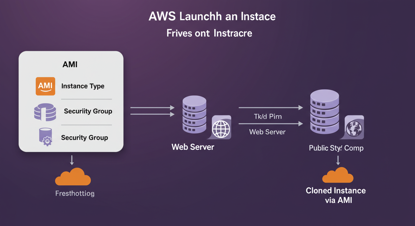 - AMI(Amazon Machine Image): 인스턴스를 생성하는 데 필요한 정보를 담은 템플릿이다. 운영체제(OS), 애플리케이션 서버, 초기 설정 등이 포함된다. AWS에서 제공하는 기본 AMI를 사용하거나, 직접 구성한 인스턴스로 사용자 지정 AMI를 생성할 수 있다.